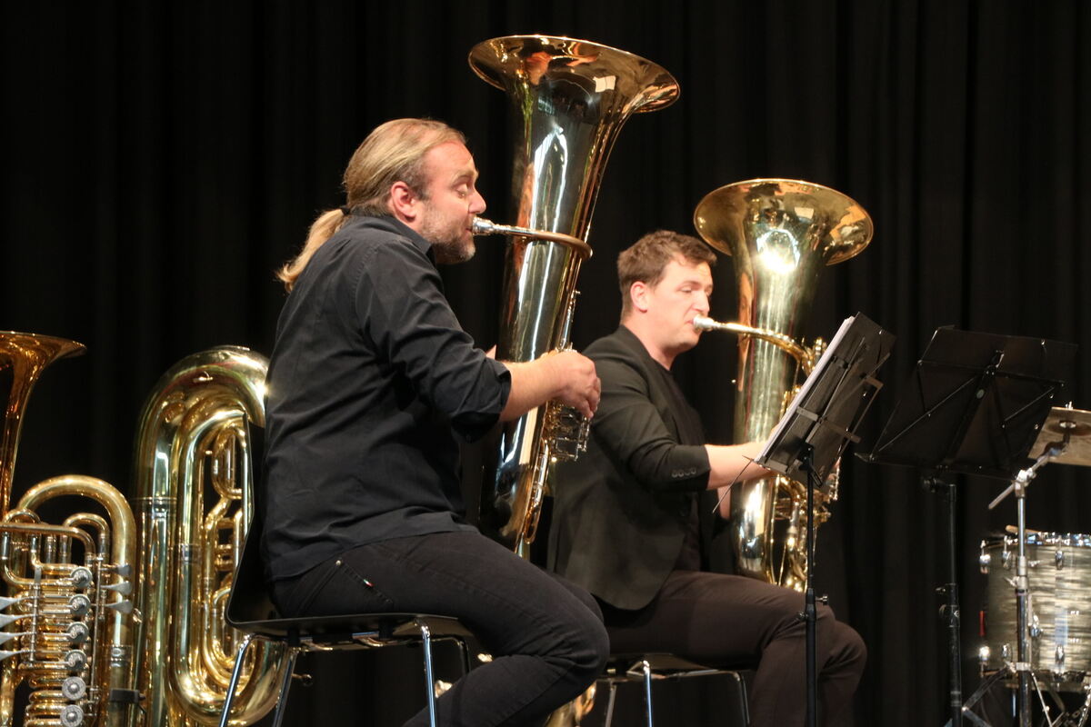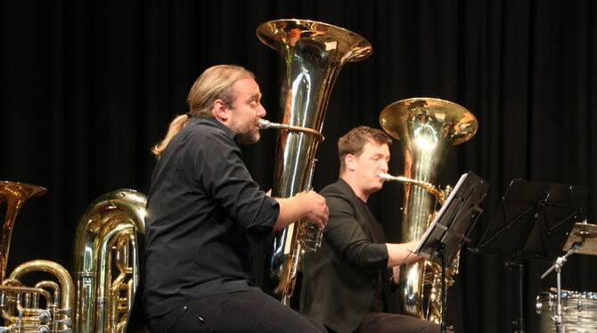 Mehr geht nicht an der Tuba: Andreas Martin Hofmeir und Thomas Mahlknecht beim Konzert in der Schillerhalle