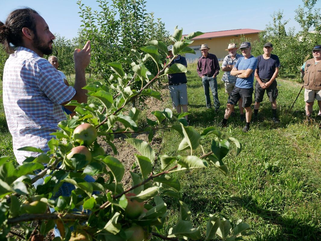 Führung von Martin Nagel durch die Metzinger Obstbauanlage zum Thema »Klimawandel«. FOTO: LEISTER