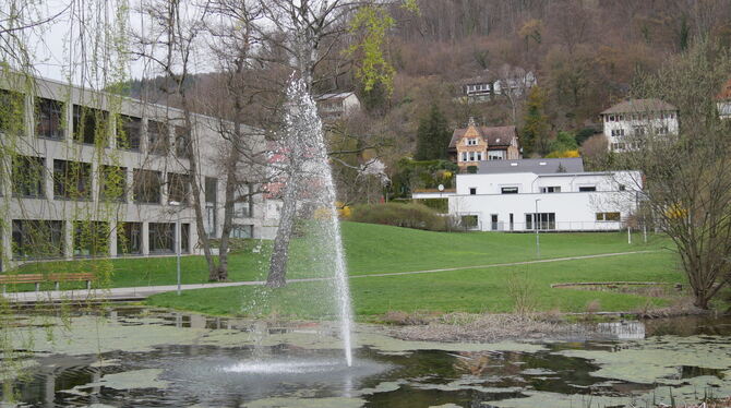 Warum das Uracher Kinderhaus »Am Seele« heißt, sieht man auf dem Bild. Das weiße Gebäude liegt unweit des kleinen Gewässers mit Wasserfontäne neben der Georg-Goldstein-Schule. Der Gemeinderat hat jetzt beschlossen, dass es mit einer Fotovoltaikanlage bestückt wird. Die Verwaltung hatte für eine 14,8 kWp-Anlage plädiert, der Gemeinderat hatte sich für eine deutlich größere 44,3 KWp-Anlage entschieden und damit auch Bürgermeister Elmar Rebmann zum Umstimmen bewogen. FOTO: FINK