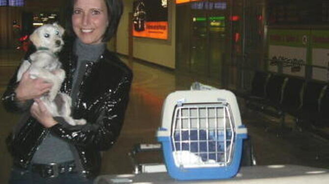 Ulrike Gaiser mit ihrem kleinen Schützling Flussele - gerade aus Fuerteventura zusammen mit seinen beiden Flugpaten gelandet.