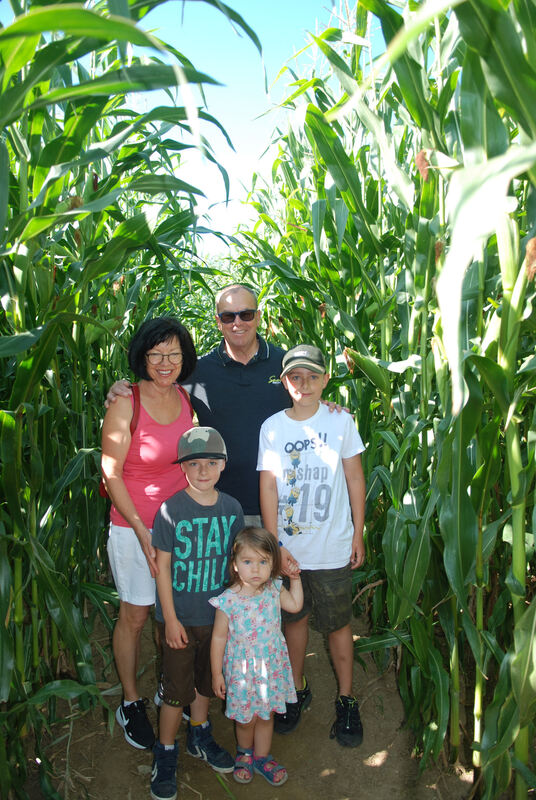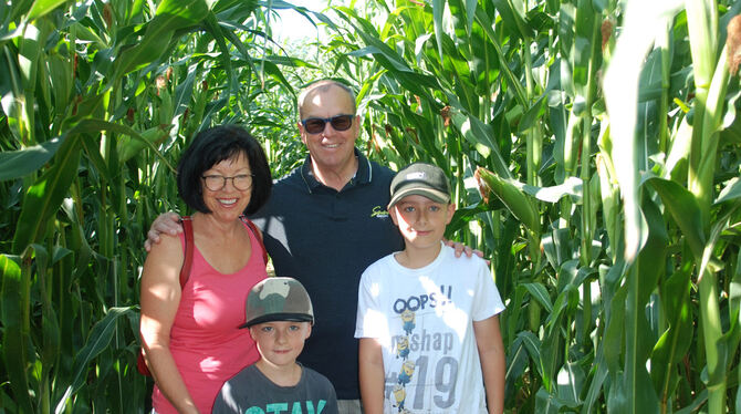 Ein Spaß für Groß und Klein: Familie Buchfink sucht sich Wege durchs Maislabyrinth. Die Pflanzen sind rund 2,50 Meter hoch.
