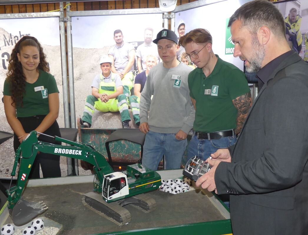 Steffen Haupt vom Kreisschulamt spielte gerne Baggerfahrer. Er kam in Vertretung von Landrat Ulrich Fiedler als Schirmherr der Veranstaltung. FOTO: SANDER