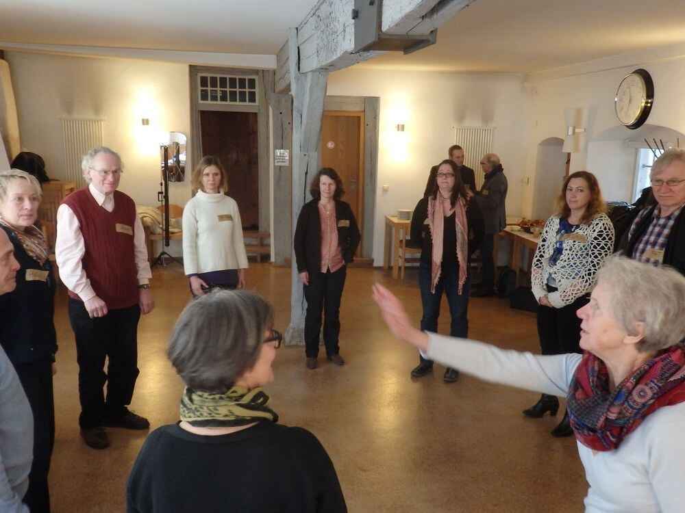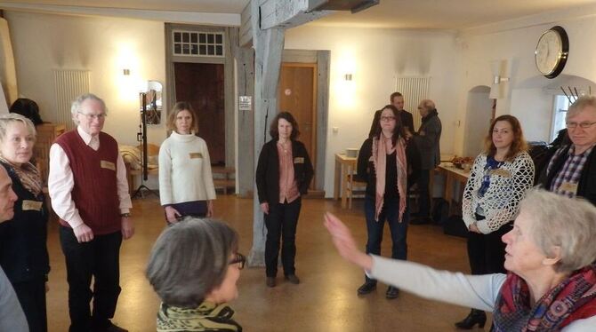 »Verbündete finden« heißt diese Übung, bei der die Workshop-Teilnehmer auch körperlich auf Tuchfühlung gehen. FOTO: VEIT