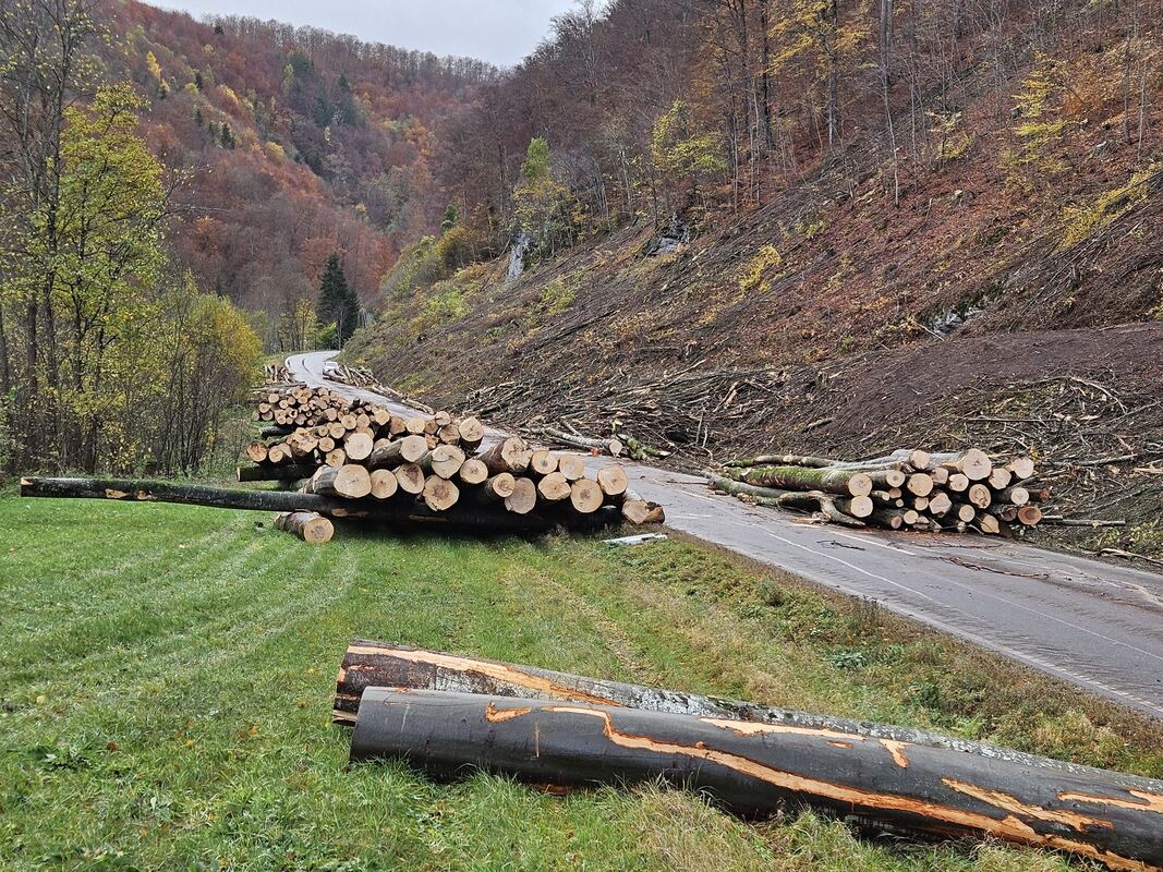Noch liegt zu viel Holz auf der Straße und im Bankett – die Wiedereröffnung der B 465 verzögert sich.