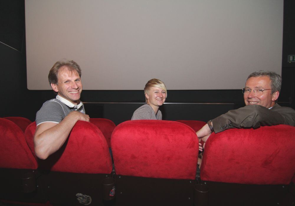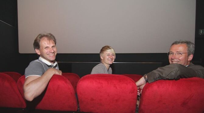 Auf dass viele Leute kommen: Thorsten Hail (links) und Anna Klotz vom Forum 22 freuen sich mit Thomas Braun vom Kultur-referat auf das 22. Uracher Open-Air-Kino im Hof des Residenzschlosses.