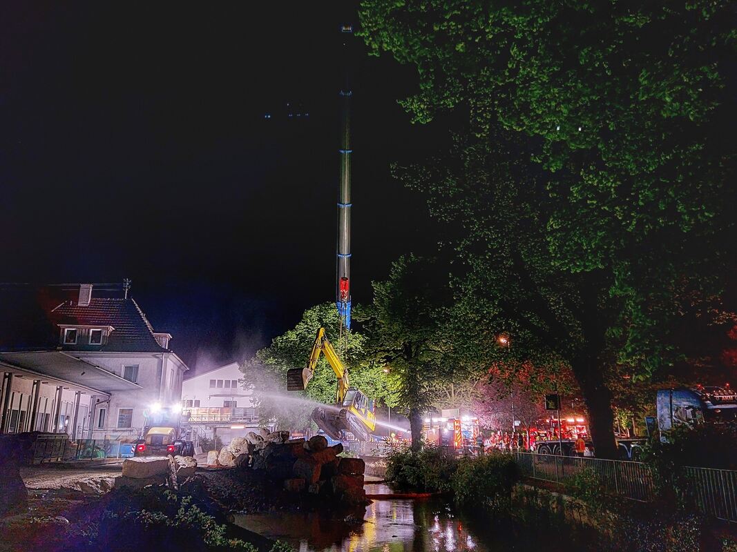 Bagger in der Erms eingesunken: So lief die nächtliche Bergung in Bad Urach