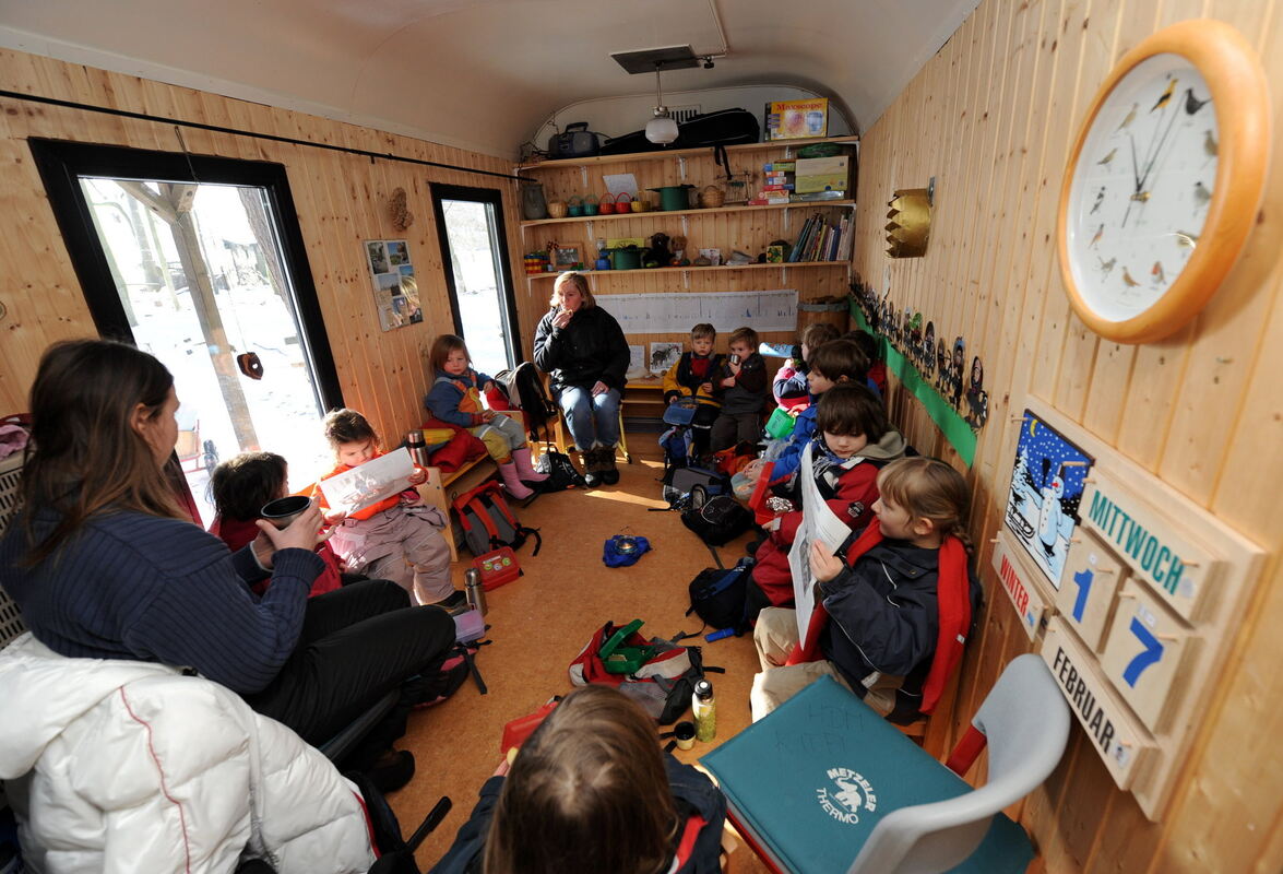 So könnte der jetzt bestellte Bauwagen des neuen Waldkindergartens von Walddorfhäslach von innen aussehen. Er bietet genügend Platz für Kinder und Erzieherinnen, wenn es im Freien wirklich zu ungemütlich wird. FOTO: DPA