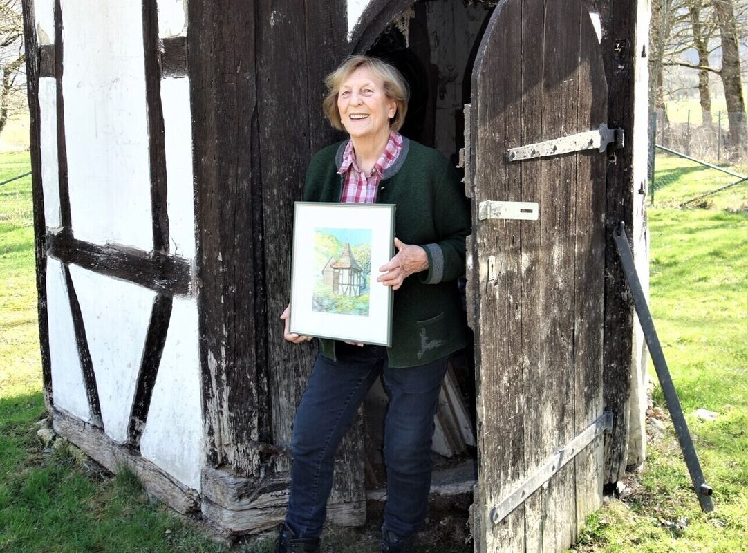 Ursula Salzer mit einer Zeichnung aus Hans Helferstorfers Buch »Die Wunder am Wege sehen«.