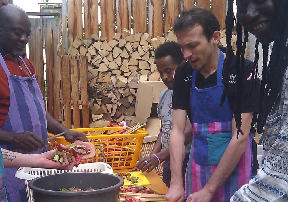 Drei Zentner Rhabarber von einem Feld, das die Wannweiler Gärtnerei Hespeler kostenlos zur Verfügung stellte, verarbeiteten Flüchtlinge aus sechs Nationen gemeinsam zu Sirup und schmackhafter Marmelade. FOTO: PRIVAT