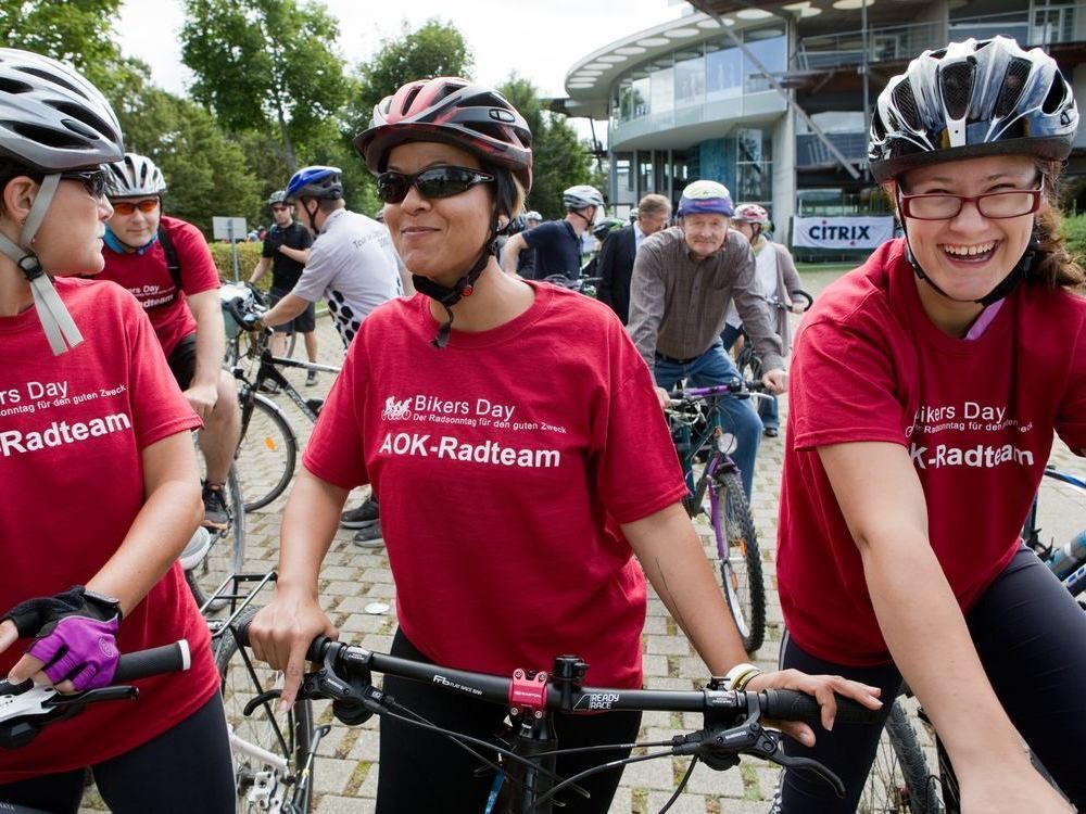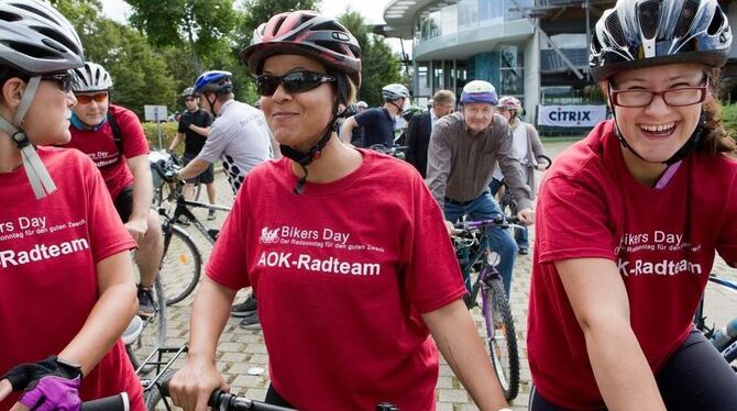 Vorfreude auf den Start: Die Biker radeln, die AOK zahlt - zugunsten von Mukoviszidose-Kranker.