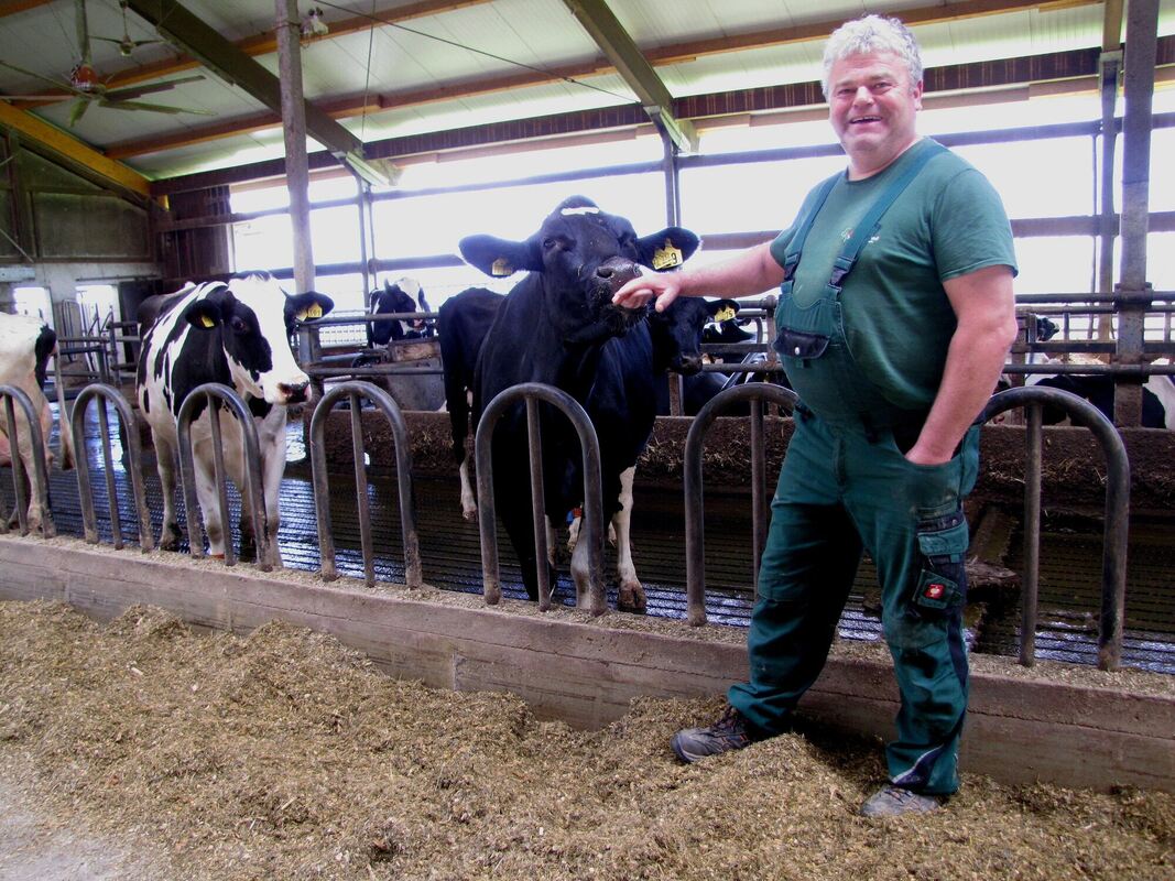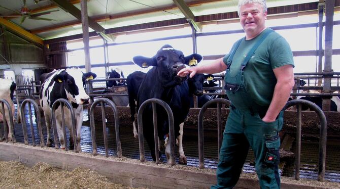 Landwirt Gerhard Neuscheler aus Walddorfhäslach mit einer seiner »Lieferantinnen« für die Biogasanlage.