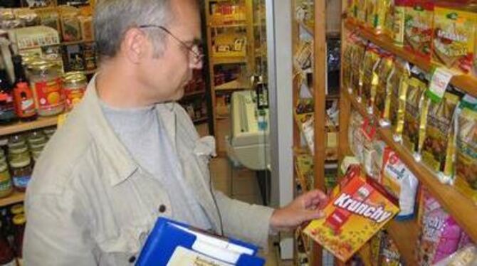 Mit der Prüfung der Waren im Regal beginnt die Arbeit des Bio-Kontrolleurs Christian Strohmeyer (hier im Münsinger Naturkost-Fachgeschäft »Lavendel«). Zu Ende ist sie damit noch längst nicht. Im Büro des Ladens geht's ans Eingemachte.
