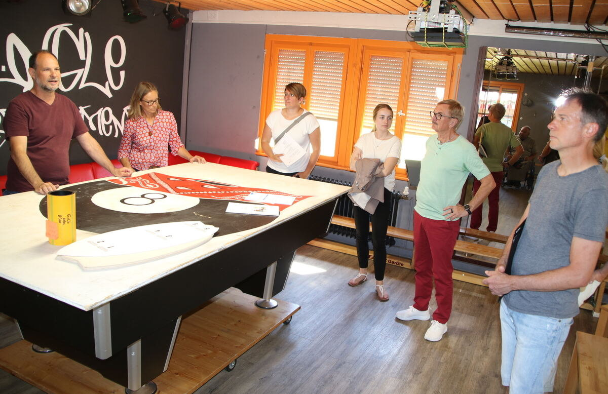 Lars Luft und Christel Bahnmüller-Luft (am Tisch stehend) empfingen 2023 die Mitglieder des Dettinger Verwaltungsausschusses zu einer Sitzung im Jugendhaus. Wie nun deutlich wird, gibt es dort einen großen Sanierungsbedarf.