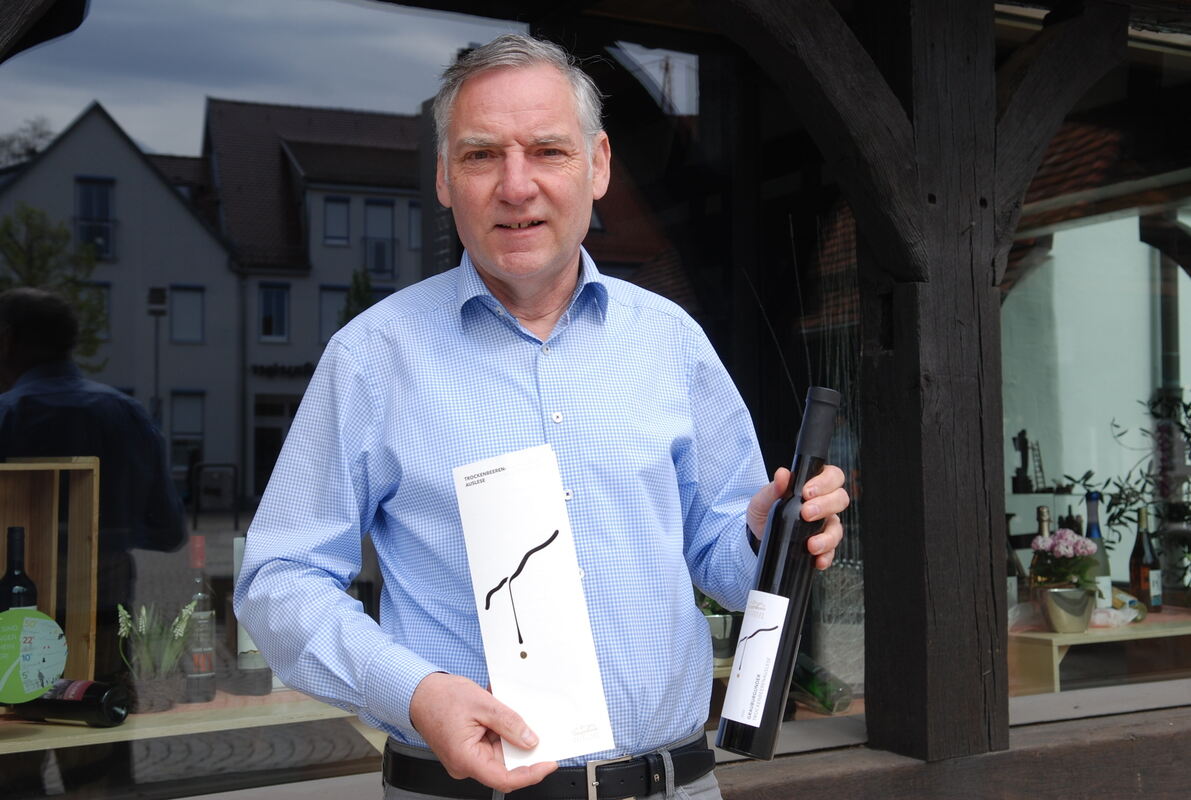Jörg Waldner, Vorsitzender und Geschäftsführer der Weingärtnergenossenschaft Metzingen-Neuhausen, mit einem Trockenbeerenauslese-Fläschchen. FOTO: PFISTERER