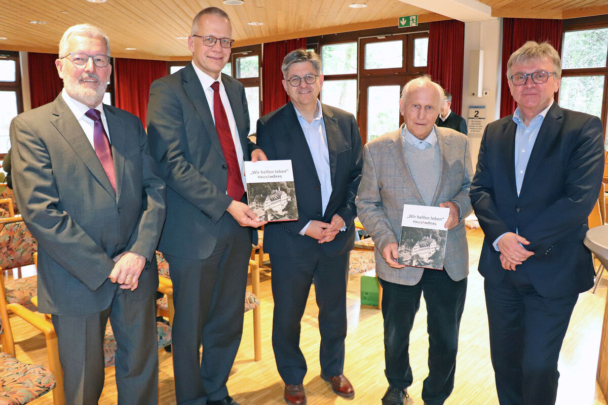Freuen sich über die Veröffentlichung des Buches »Wir helfen leben«: Martin Beck (links), Johannes Eurich, Michael Stäbler, Herbert Weippert und Bürgermeister Elmar Rebmann.