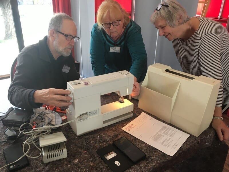 Im Repair Café Metzingen wird eine Nähmaschine repariert.