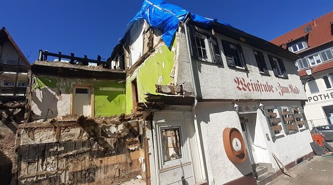 Die ehemalige Weinstube »Zum Rad« mitten in Metzingen steht nicht mehr unter Denkmalschutz. Bei dem Brand Ende November 2024 war zu viel historische Bausubstanz verlorengegangen.