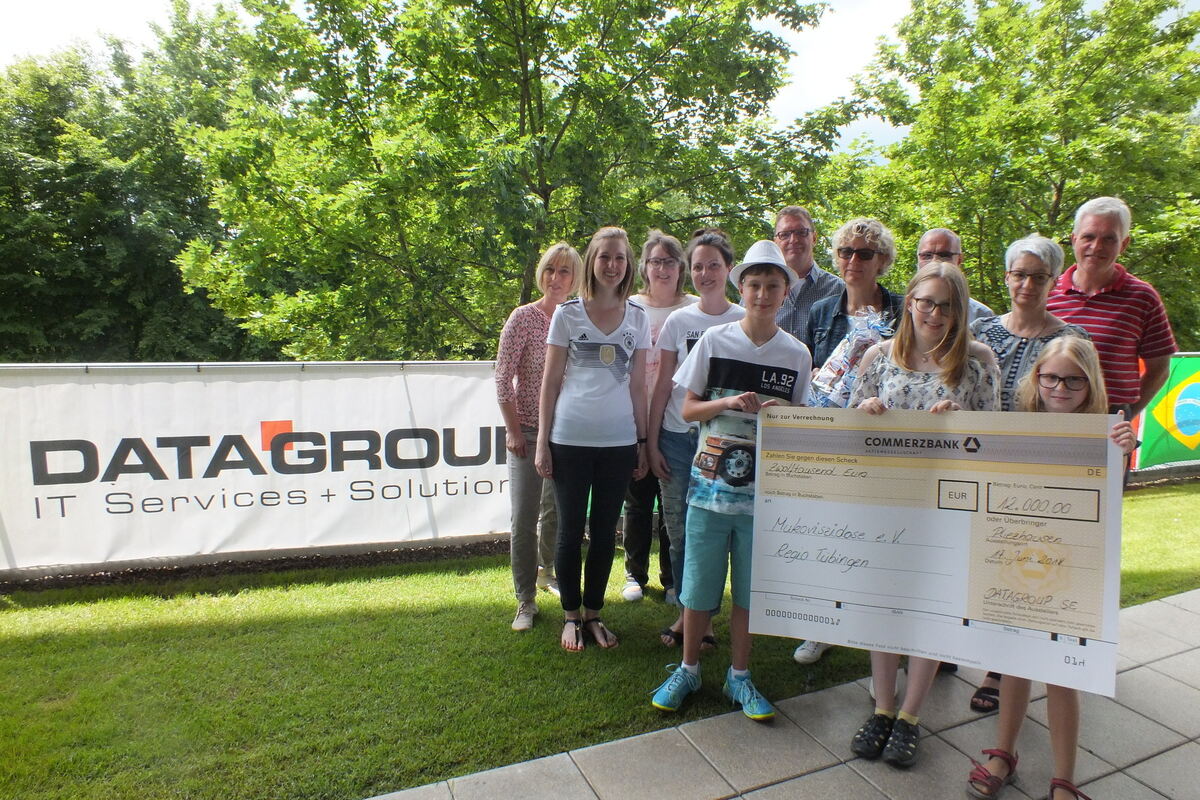 Die zehnte Auflage der Charity-Radsportveranstaltung wird also verschoben – doch aufgeschoben ist nicht aufgehoben. »Datagroup wird sich jetzt daran machen, für das gesamte Unternehmen ein neues umfassendes Konzept für Charity-Projekte zu entwickeln«, erläutert Sarah Berger-Niemann. Dies betreffe die Bereiche Sport, Soziales, Kunst und Kultur. »Für was und für wen wollen wir künftig in diesen gesellschaftlichen Feldern Geld in die Hand nehmen?« Darum gehe es. Dass Datagroup dem Verein Mukoviszidose gewogen ist und bleibt, davon zeugt der 12 000-Euro-Scheck, den die beiden Mitarbeiterinnen Joelle Robineau und Nadine Schwaiger jetzt beim Sommerfest des Unternehmens an Vereinsmitglieder übergaben.