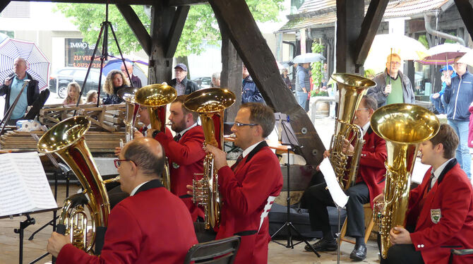 »Endlich dürfen die Musiker wieder spielen. Das ist so schön«, oder »darauf haben wir so lange gewartet. Da spielt der Regen keine Rolle«, war mehrfach bei den rund 150 Zuhörern rund um die Kelter zu hören, als die ersten Töne der Stadtkapelle Metzingen unter Leitung von Stadtmusikdirektor Bruno Seitz in der offenen Marktkelter nach langer Wartezeit wieder erklangen.