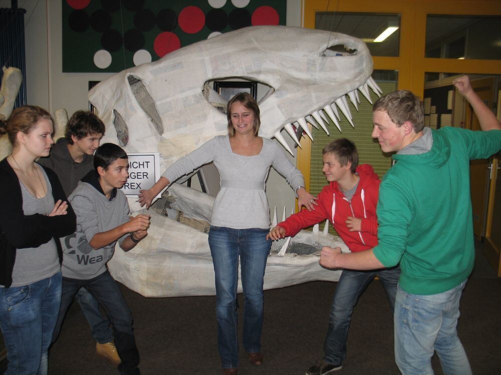 Vorsicht, bissig! Aber nicht mehr lange. Streitschlichtung wie hier auf dem gestellten Foto ist eine von vielen Aufgaben der Schulsozialarbeiter. An der Schönbein-Realschule und der Neugreuth-Schule ist Lena Fischer im Einsatz, hier mit Neuntklässlern der Realschule. FOTO: PFISTERER