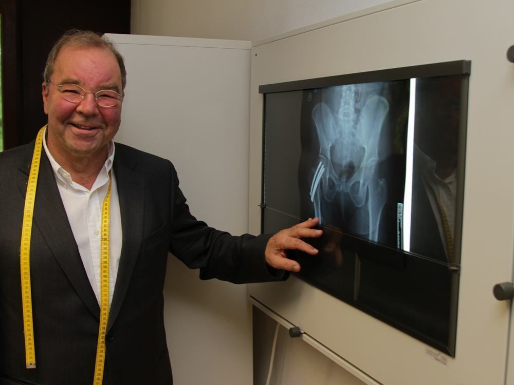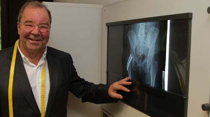 Das Medizinerherz von Dr. Jörg Zeeh schlägt besonders für entzündlich-rheumatische Erkrankungen, aber mit einem sauber verarzteten Oberschenkelhalsbruch kann sich der neue Chefarzt der Reha-Klinik Schwäbische Alb in Bad Urach auch anfreunden. Ein Markenzeichen von ihm ist das Schneider-Maßband, das er bei der Arbeit häufig im Einsatz hat.