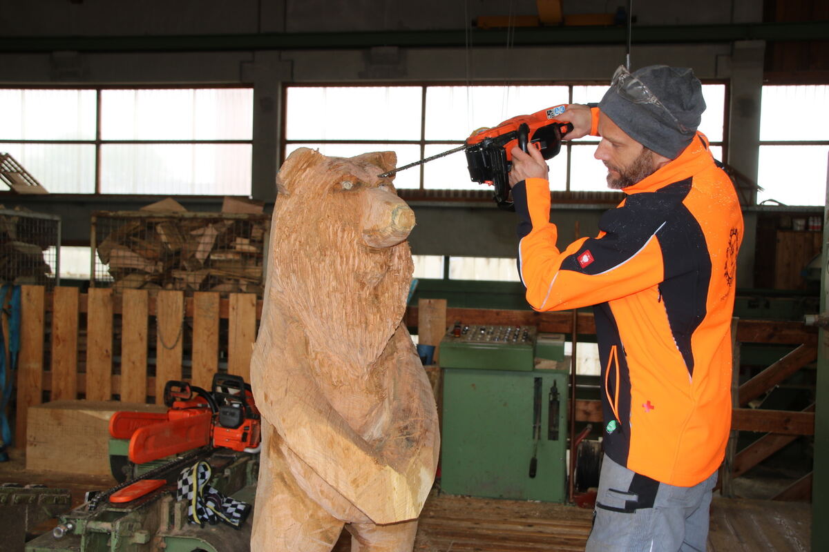 Der Neuhäuser Markus Ziegler formt mit seiner Kettensäge Tiere