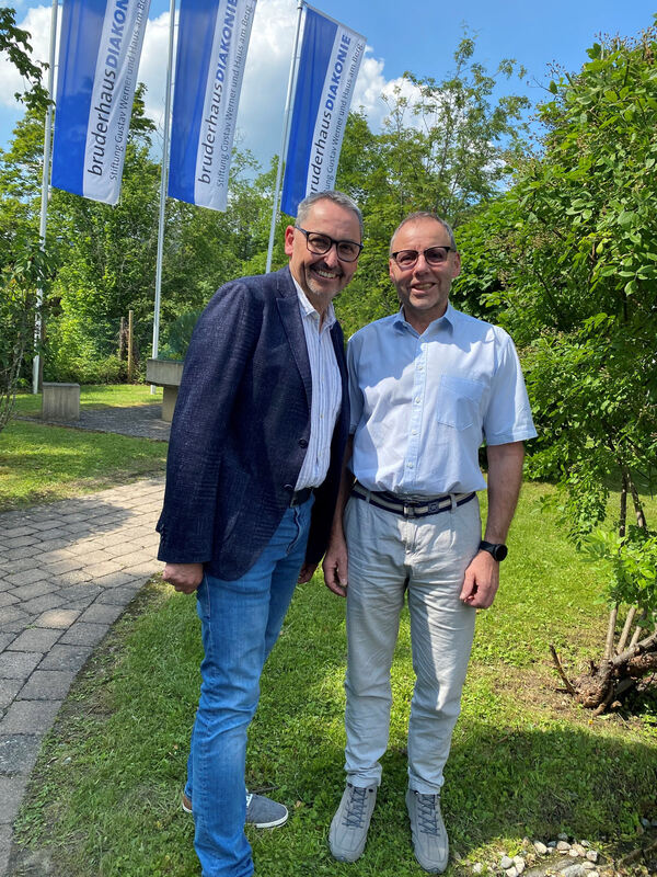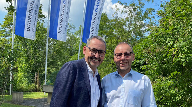 Schon seit ein paar Jahren planen die Verantwortlichen der Bruderhaus-Diakonie für die Königshöhe einen Neubau an einem neuen Standort. Die Landesheimbauverordnung schreibt ein Hitzeschutzkonzept und Einzelzimmer für die Heimbewohner vor. Rechtzeitig zur Gartenschau-Eröffnung in Bad Urach soll 2027 ein Haus für 60 Bewohner am Rand von Dettingen eröffnet werden. Jörg Scheika freut sich, dass seine Erfahrungen und Konzepte in die Planung des Neubaus eingeflossen sind. Diesen wird seine Nachfolgerin mit Fachbereichsleiter Thomas Stäbler realisieren. (eg)