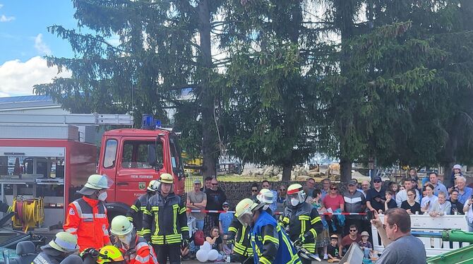 Bei der Leistungsschau in Pliezhausen zeigten Feuerwehrleute im Juni 2024 ihr Können. Wegen der angespannten Haushaltslage muss der neubau eines Feuerwehrhauses von Gniebel und Dörnach erst einmal warten.