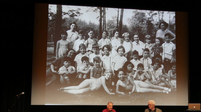 Christoph Wagner stellt im Haus der Geschichte in Stuttgart sein Buch »Lichtwärts!« vor. Auf dem Podium Winfried Kretschmann, der das Vorwort geschrieben hat. Der Autor und der Ministerpräsident kennen sich aus Grünen-Anfangszeiten. Im Hintergrund ein Bild der »New Herrlingen School«. Schulleiterin Anna Essinger war mit ihrer Reformschule von Herrlingen bei Blaustein vor den Nazis nach Südengland emigriert.