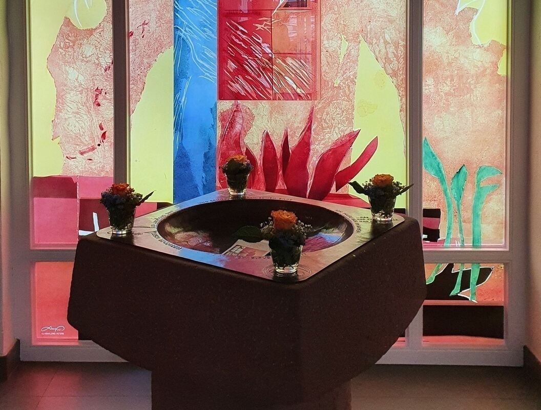 PLIEZHAUSEN. Kürzlich wurde mit der Segnung der neuen Franziskusfigur und des Tauffensters nicht nur das Kirchengebäude der Franziskuskirche in Pliezhausen verschönert, sondern auch ein Akzent im Gemeindeleben gesetzt: »Diese Gegenstände sollen uns im Glauben anregen und unseren Glauben stärken. Der Namenspatron ist nicht nur für den Einzelnen, sondern auch für die Gemeinde Anspruch, sich am Vorbild dieses Heiligen auszurichten«, so Pfarrer Dietmar Hermann. Wolfgang Prause erinnerte an den Prozess der Kirchengestaltung und an den Kunstwettbewerb. Es folgte die Enthüllung der neuen Franziskusfigur, gestaltet von Gerhard Ploner aus Gufidaun. Das Werk spiegelt sehr schön die Einfachheit des heiligen Franziskus wider. Das neue Tauffenster gestaltete Gabi Weiss aus Wehingen. Es stellt den Sonnengesang des Franziskus dar. Das Wasser führt optisch vom Himmel ins Taufbecken als lebendiges Wasser, wo es dem Täufling als Zeichen für den Beginn als Kind Gottes wird.