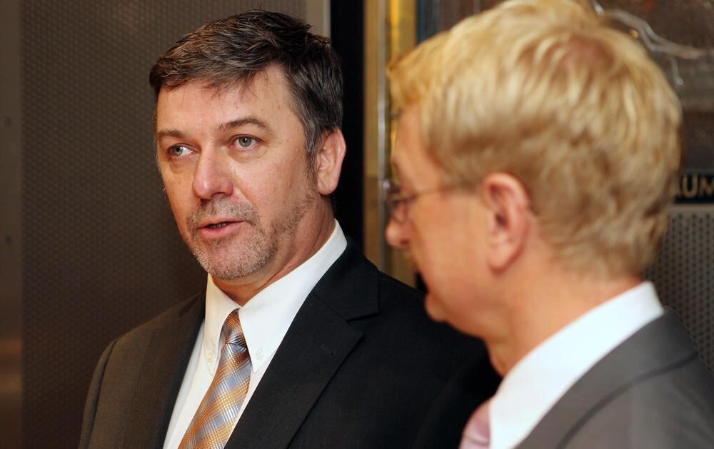 Für weitere acht Jahre im Amt: Dettingens Bürgermeister Michael Hillert wurde am Mittwochabend vereidigt, rechts sein Stellvertreter, Gemeinderat Dr. Rolf Hägele. FOTO: PR