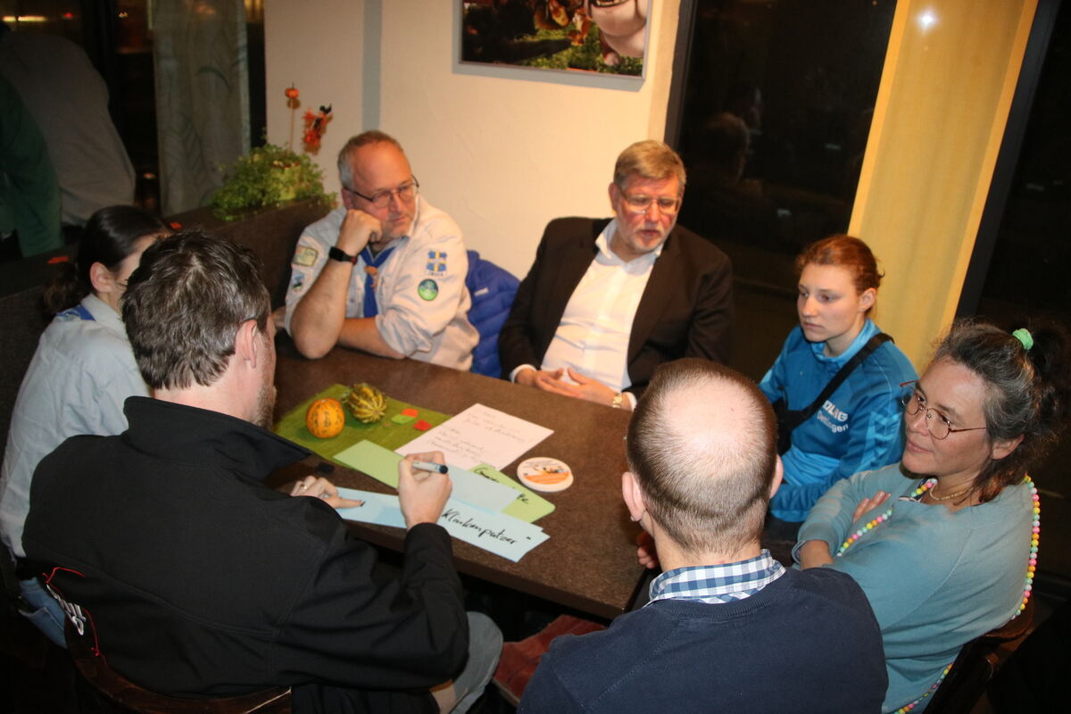 In der Jugendarbeit aktive Ehrenamtliche aus dem Landkreis im Gespräch mit Landrat Dr. Ulrich Fiedler wie die Juleica im Kreis Reutlingen bekannter gemacht werden könnte.
