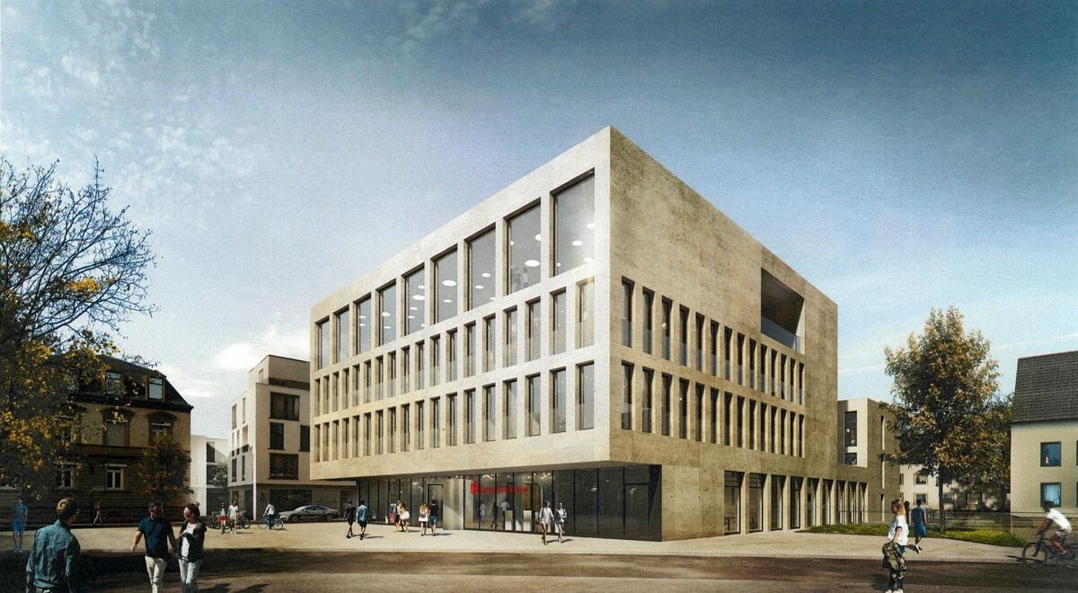 Gut zwei Jahre beträgt voraussichtlich die Bauzeit für das neue Kreissparkassen-Gebäude. Eine Zeit, die die Bank nicht mit Containern überbrücken möchte: Für das Schalter- und Privatkundengeschäft mietet sie sich deshalb in den Posthof ein, der gleich neben der Baustelle steht. Weitere Büros werden derzeit hinter alter Industriefassade auf dem Henning-Gelände, der heutigen Motorworld, hergerichtet. (GEA)