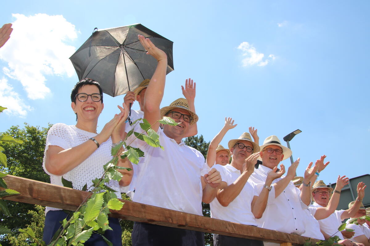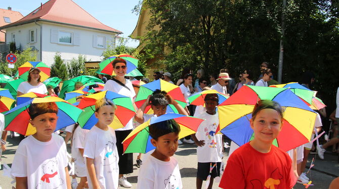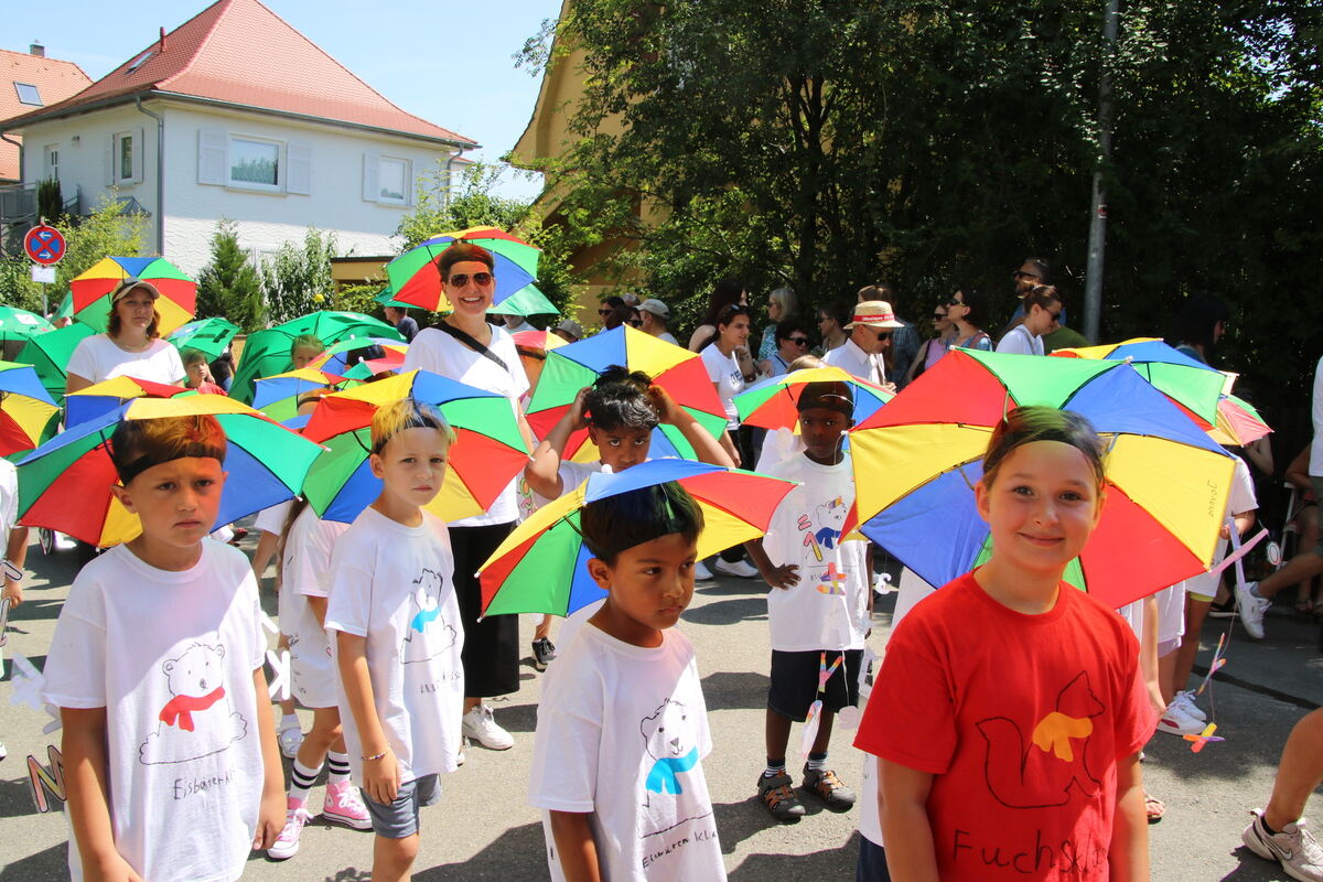 Gut beschirmt und somit geschützt vor der Sonne nahmen diese Kinder am Umzug teil.