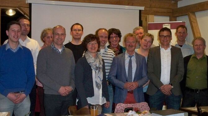 Die Gemeinderatskandidaten der FWV in Dettingen (von links) Manuel Straßer, Björn Rupp, Elke Unverzagt, Ulrich Bauer, Peter Vaßen, Ellen Stahl, Martin Salzer, Carolin Henne-Haag, Dr. Rolf Hägele, Ulrich Hiller, Carmen Seeger, Wolfram Beck, Klaus Hirrle, Reinhold Müller. Es fehlen Karl-Heinz Dirr und Frieder Scheiffele. FOTO:PR