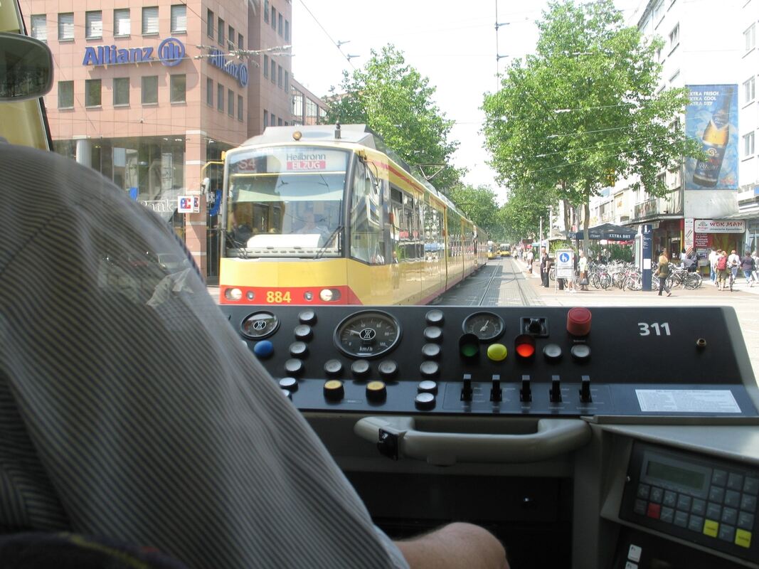 Das Archivbild zeigt den Blick aus einer Karlsruher Straßenbahn, der »gelben Sau«, auf dem Weg nach Freudenstadt. 2007 war der Regionalverband vor Ort, um sich den moderne Zug anzusehen. Ein ähnlicher Zug könnte in Bad Urach die B 28 überqueren.