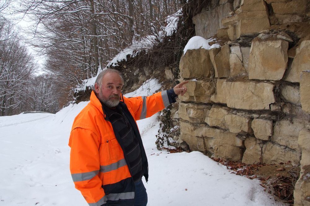 Vorsicht Steinschlag: Dettingens Bauhofleiter Georg Schnitzler zeigt, woher auf der Steige Ungemach droht. FOTO: MAR