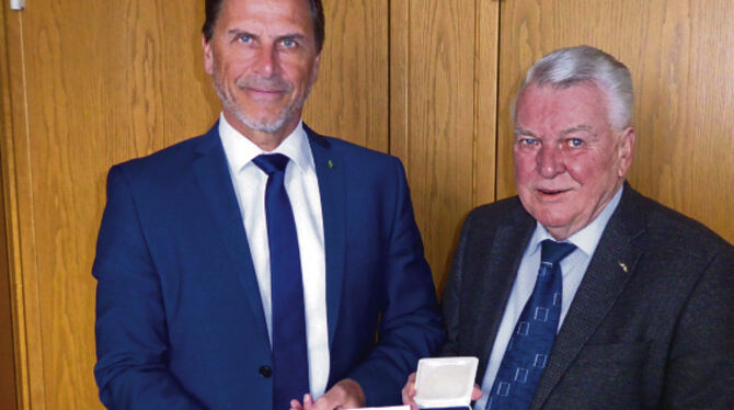 PLIEZHAUSEN. Aus der Hand von Bürgermeister Christof Dold hat Dieter Berner die Pliezhäuser Bürgermedaille erhalten. Dold würdigte damit im Auftrag des Gemeinderats das besondere Engagement Berners in der Gemeinde.