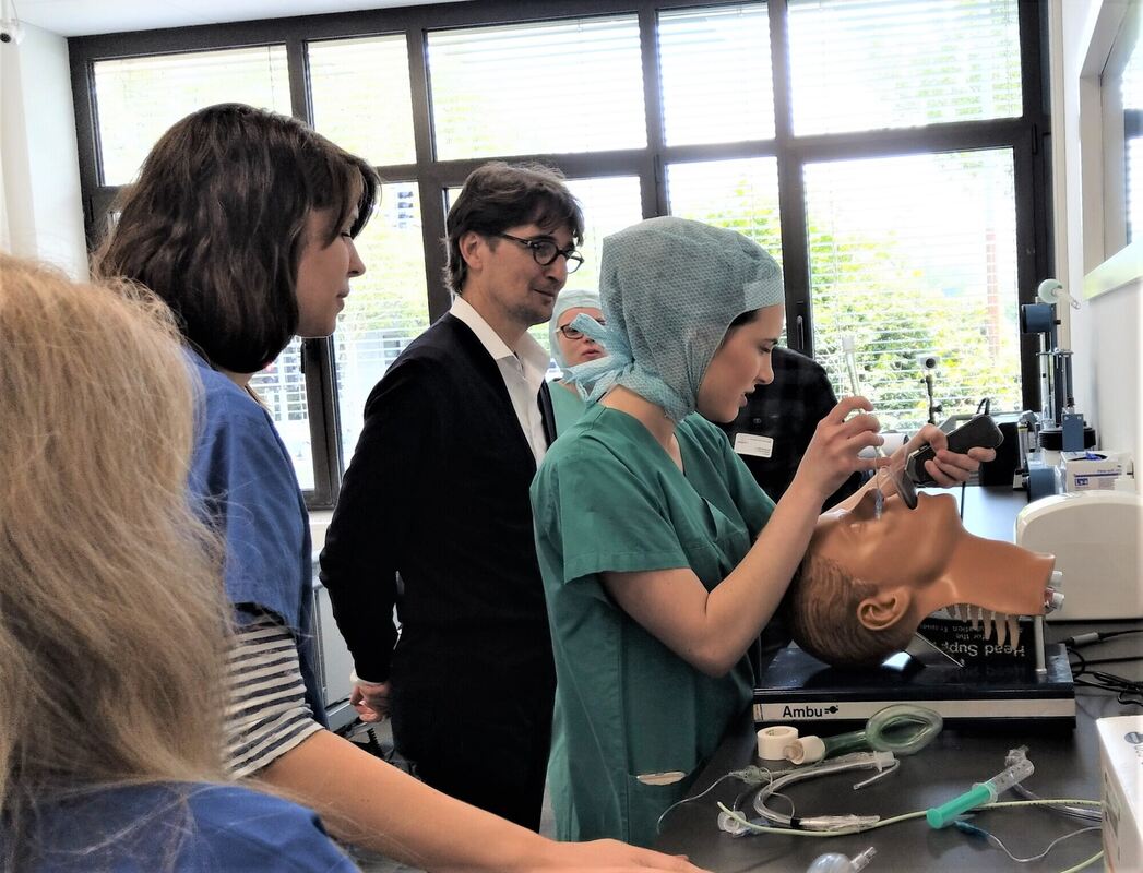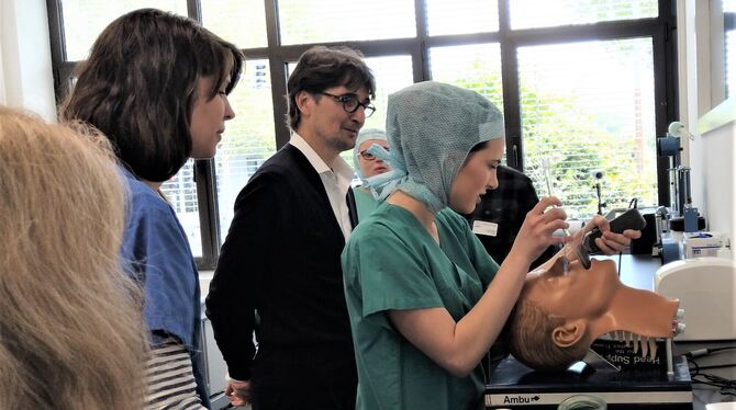 Wie ein Beatmungsschlauch vor einer Operation gelegt wird, wurde beim Tag der offenen Tür in der neuen Akademie der Kreiskliniken demonstriert. Foto: Böhm