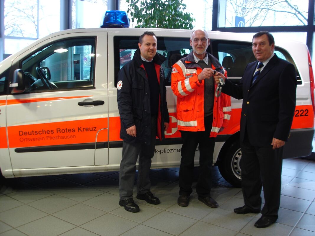 Im Jahr 2008 nahm Dr. Reiner Schenk (Mitte) ein gespendetes Auto für den Ortsverein Metzingen des Deutschen Roten Kreuzes entgegen. Am 7. September ist er im Alter von 70 Jahren plötzlich und unerwartet gestorben. ARCHIVFOTO: BERITT
