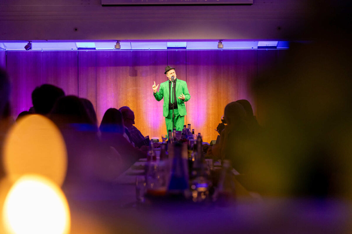 In den festlich dekorierten Zillenhart-Saal kamen rund 80 Gäste. Manfred Leibfarth, der Vorsitzende des Stiftungsvorstands der Bürgerstiftung, führte locker durch den Abend. Er versprach den Gästen einen besonderen Abend bei gutem Essen, Getränken und Programm. »Kommen Sie miteinander ins Gespräch und fühlen Sie sich wertgeschätzt! Mit einem einmaligen Abend, den es in dieser Besetzung so nur einmal geben wird« so Leibfarth.