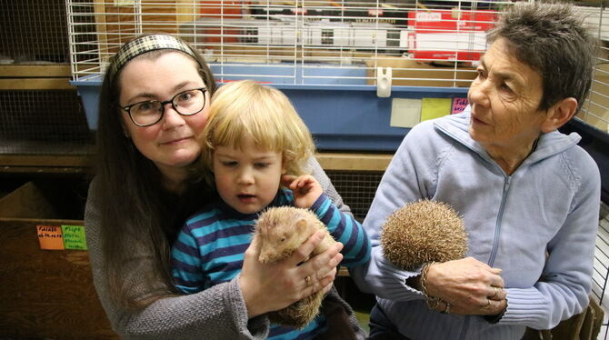 Christl Reusch (rechts) mit Tochter Melanie Bauer und Enkel Lennox, der Igel ebenso mag wie seine Oma und Mama. FOTO: OECHSNER