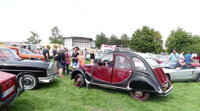 Ein Traum für Auto-Fans und Frankreich-Nostalgiker. Diese »Charleston-Ente« war nicht der einzige Hingucker in Grafenberg – ganz im Gegenteil. FOTO: SANDER