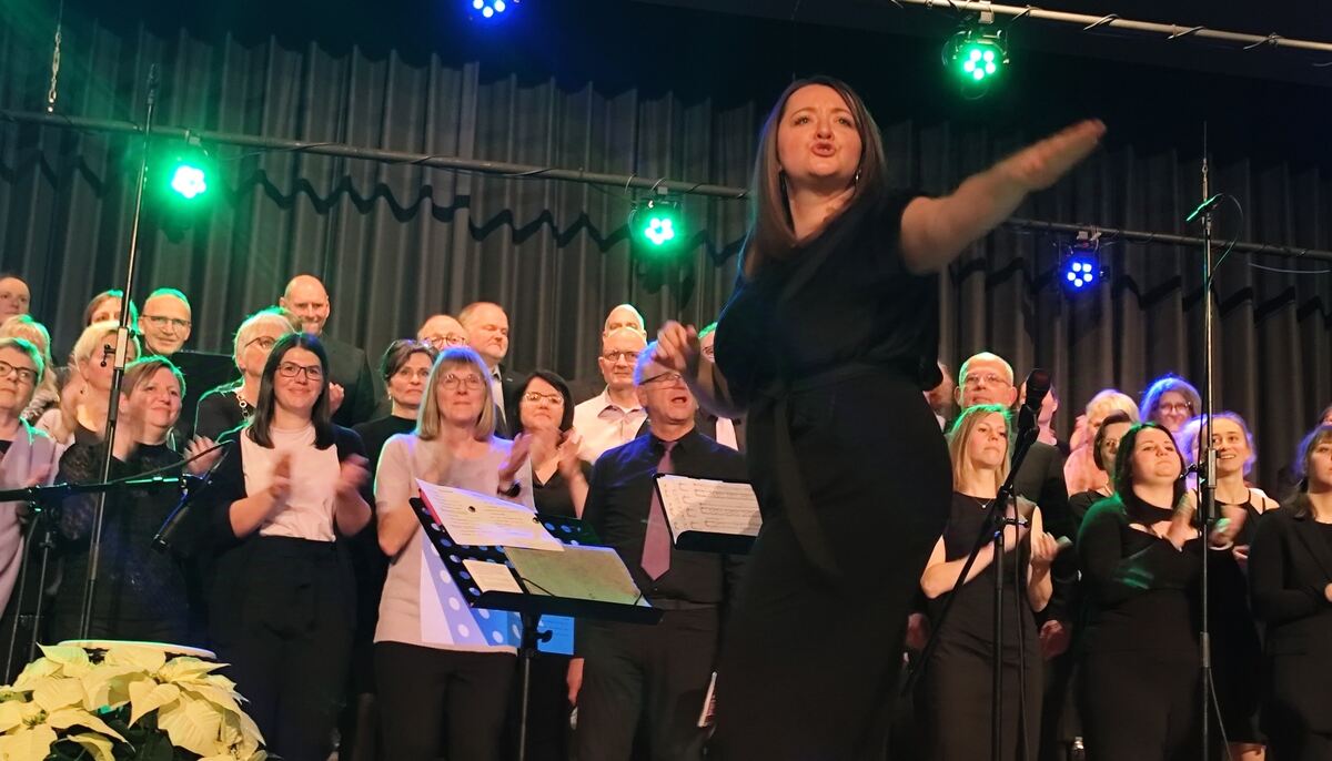 Daria Marmaridis, die Chorleiterin des Pop- und Gospelchors, reißt mit ihren Sängerinnen und Sängern die Zuhörer in Pliezhausen mit. FOTO: WENGER