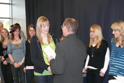 Gut gelaunt bei der Ehrung durch Metzingens Ersten Bürgermeister Dietmar Bez: Die A-Jugendhandballerinnen der JSG Neuhausen-Metzingen strahlten um die Wette.