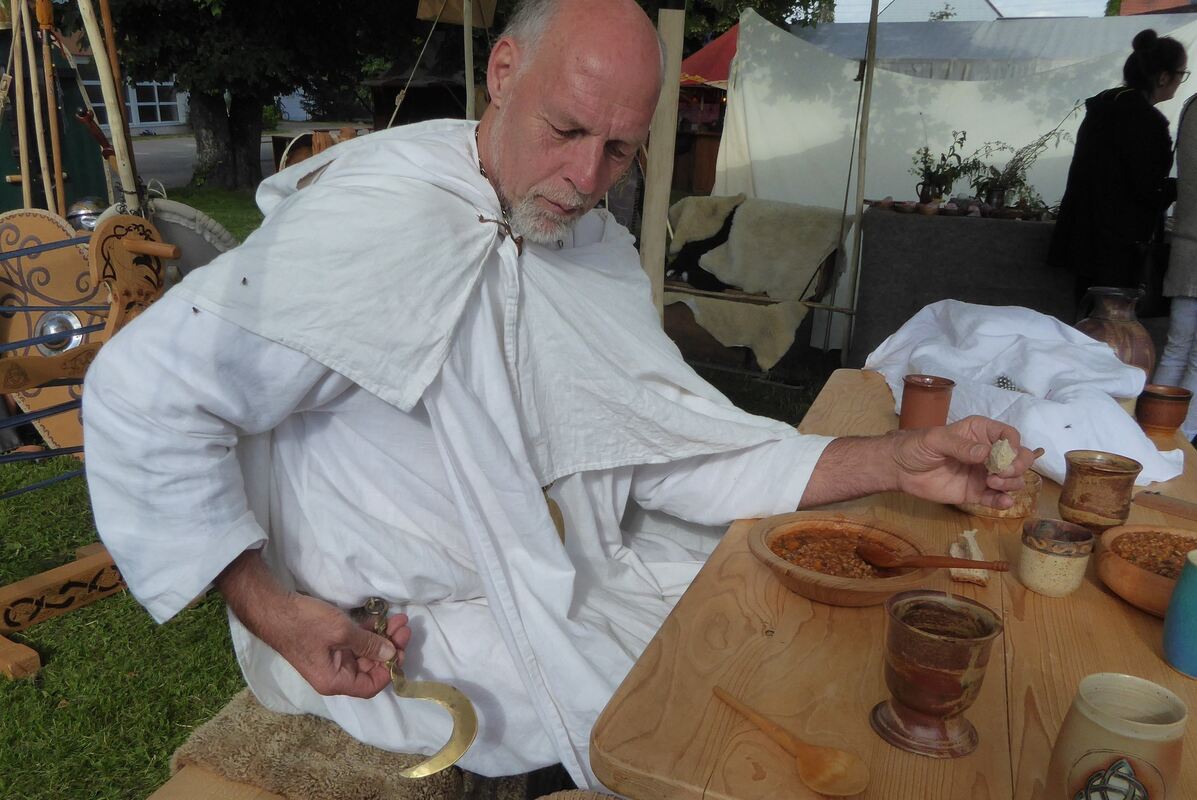 Die Kelten sind zurück (von links): Der Druide »Ascan« mit seiner kleinen Sichel aus Bronze und der Keltenfürst »Dearbhail« in seinem Kettenhemd. FOTOS: BERNKLAU