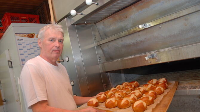 24 Laugenbrötchen um kurz nach halb zehn: Bäckermeister Reiner Gönninger in seiner Backstube in Glems.