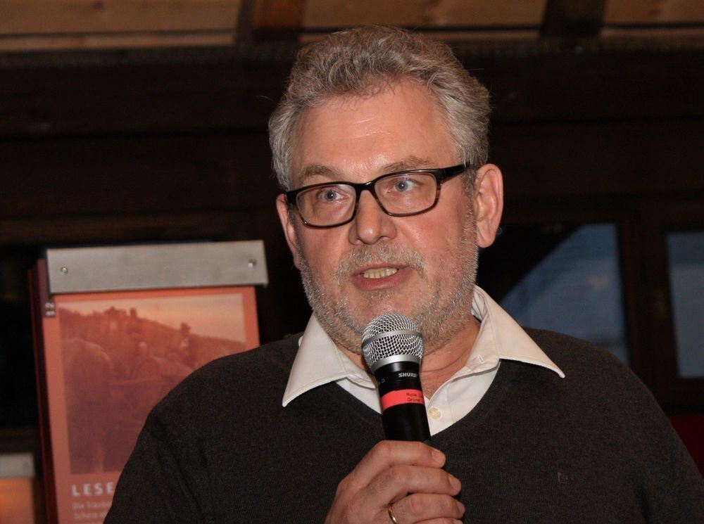 Werner Theis unterhielt die Zuhörer im Metzinger Weinbaumuseum mit seiner düster-feinsinnigen und humorvollen Lyrik bestens. Eingeladen zu der Lesung hatte der Förderkreis Metzinger Keltern. FOTO: STRÖHLE