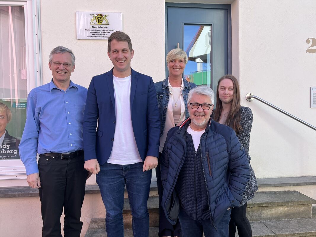 Die Eena im Gespräch mit dem Europaabgeordneten Michael Bloss: Martin Schöfthaler (von links), Michael Bloss, Cindy Holmberg (MdL), Wolfgang Arndt (Eena) und Bianca Aschauer (Vorstand Grüne Reutlingen). FOTO: RUOF