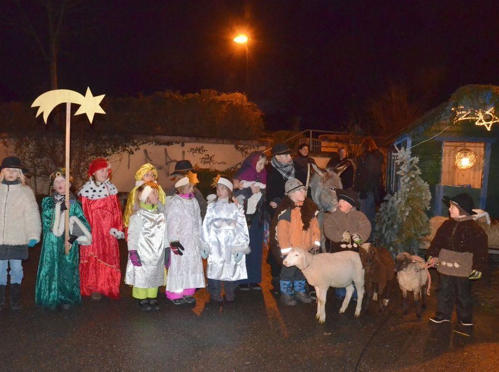 Zur Krippe her kommet im Glemser Stall: Kinder (und Tiere) spielen die Weihnachtsgeschichte.